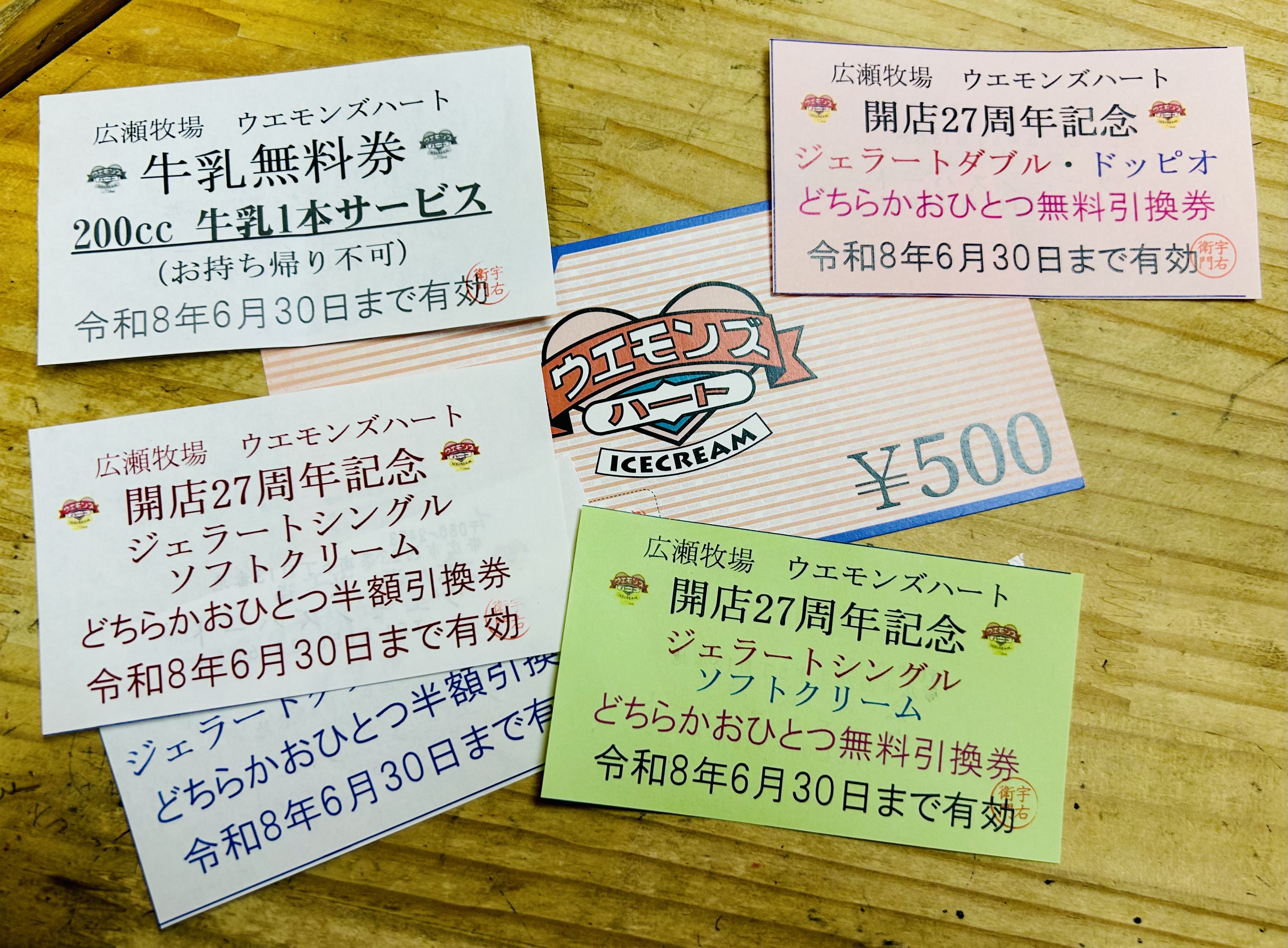 無料券、半額券、牛乳1本無料券、オリジナルグッズが当たります♪
